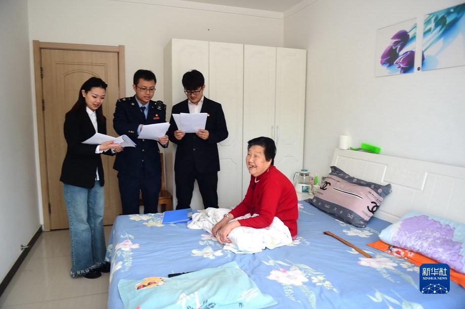 3月13日,國家稅務(wù)總局青縣稅務(wù)局的工作人員(后中)與住房和城鄉建設、自然資源和規劃職能部門(mén)的工作人員攜帶相關(guān)表證單書(shū),上門(mén)為88歲行動(dòng)不便的老人劉長(cháng)俊,辦理房產(chǎn)交易業(yè)務(wù)。新華網(wǎng) 發(fā)(劉一瑋 攝)