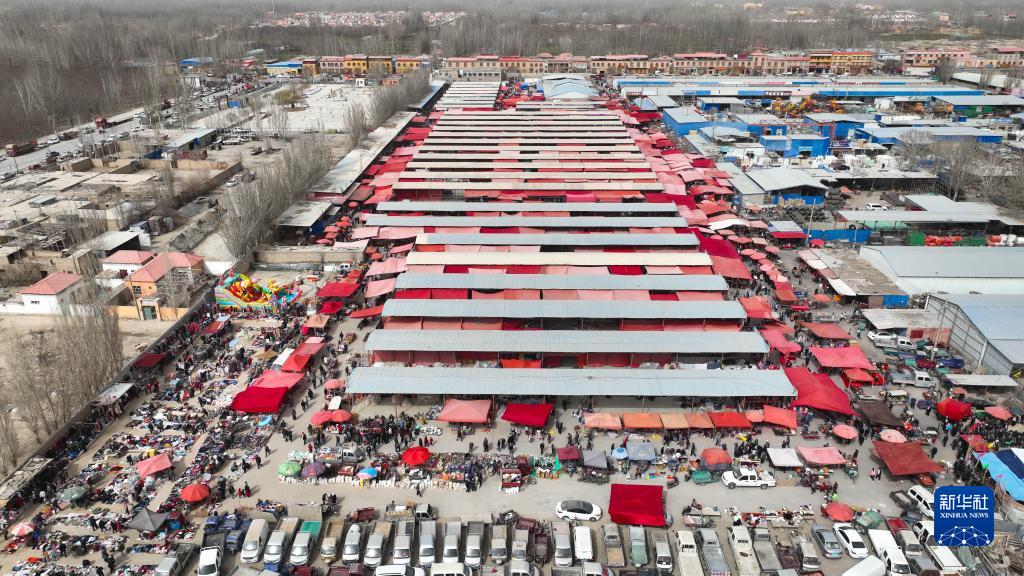 新疆莎車(chē)縣的一處綜合巴扎(無(wú)人機照片,3月12日攝)。