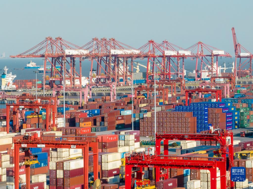 這是3月13日拍攝的江蘇太倉港碼頭(無(wú)人機照片)。