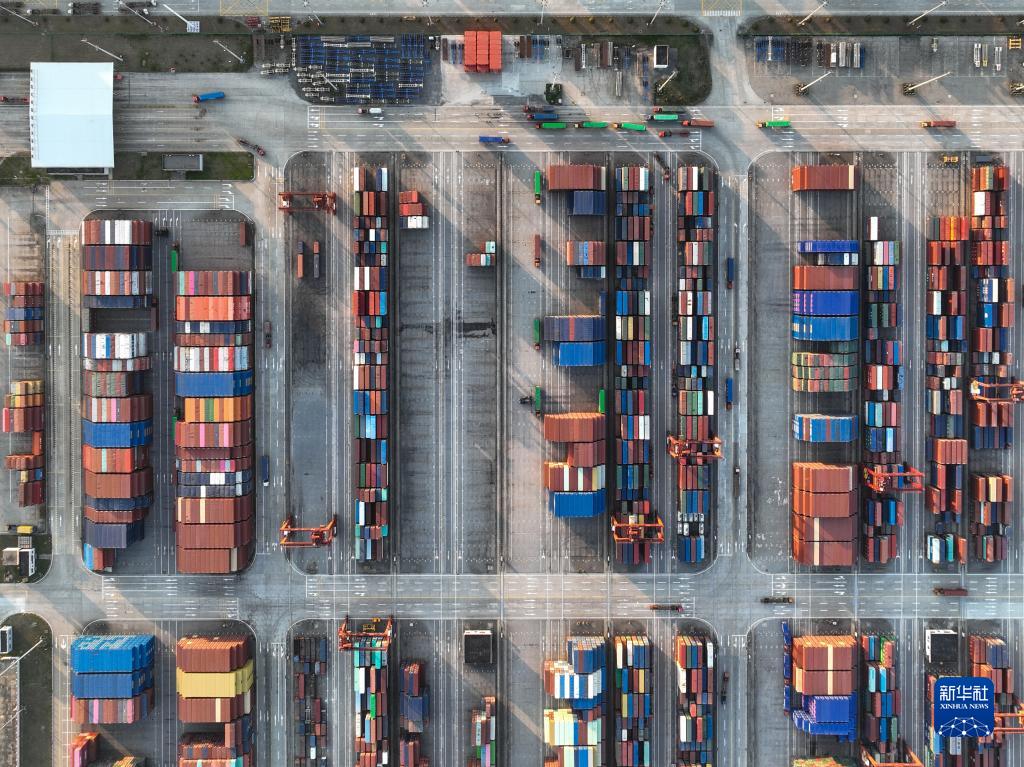這是3月13日拍攝的江蘇太倉港碼頭(無(wú)人機照片)。