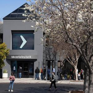 3月13日,客戶(hù)在美國加利福尼亞州圣克拉拉市硅谷銀行總部外排隊等候辦理業(yè)務(wù)。