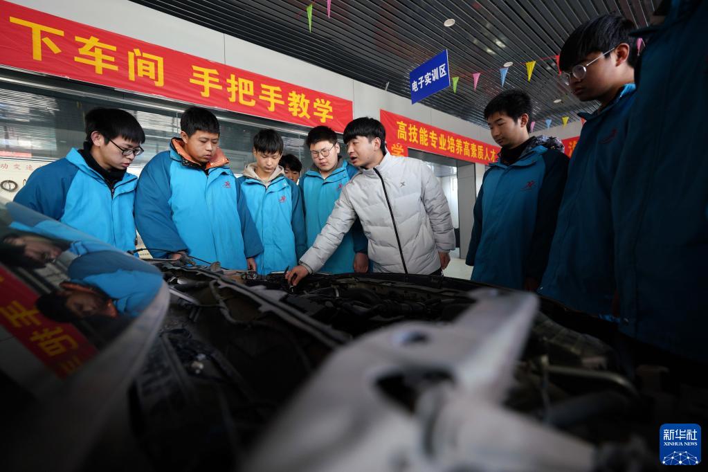 3月14日,河北省巨鹿縣職業(yè)技術(shù)教育中心的教師在為學(xué)生講解汽車(chē)維修知識。