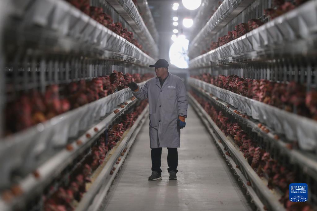 3月14日,村民在位于岫巖縣牧牛鎮的遼寧巖海牧業(yè)有限公司產(chǎn)蛋一車(chē)間工作。
