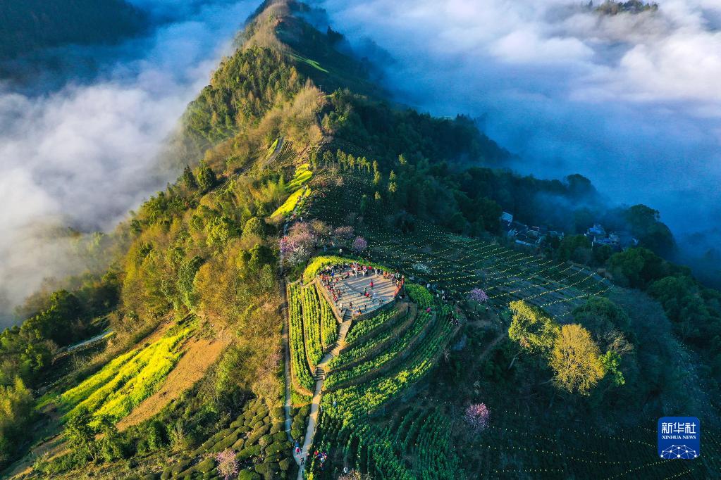 當日,安徽省黃山市歙縣霞坑鎮石潭村現壯觀(guān)云海,春景如畫(huà)。