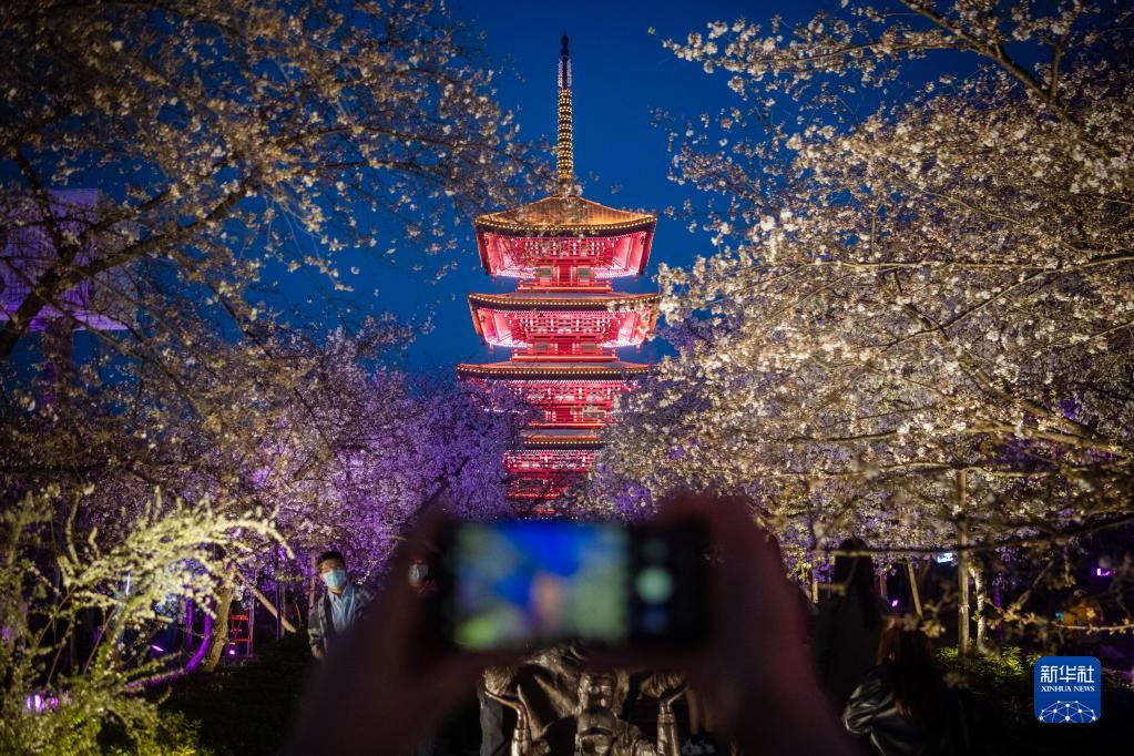 近日,湖北武漢東湖櫻園的櫻花競相綻放,吸引眾多游客前來(lái)踏青賞花,樂(lè )享春光。