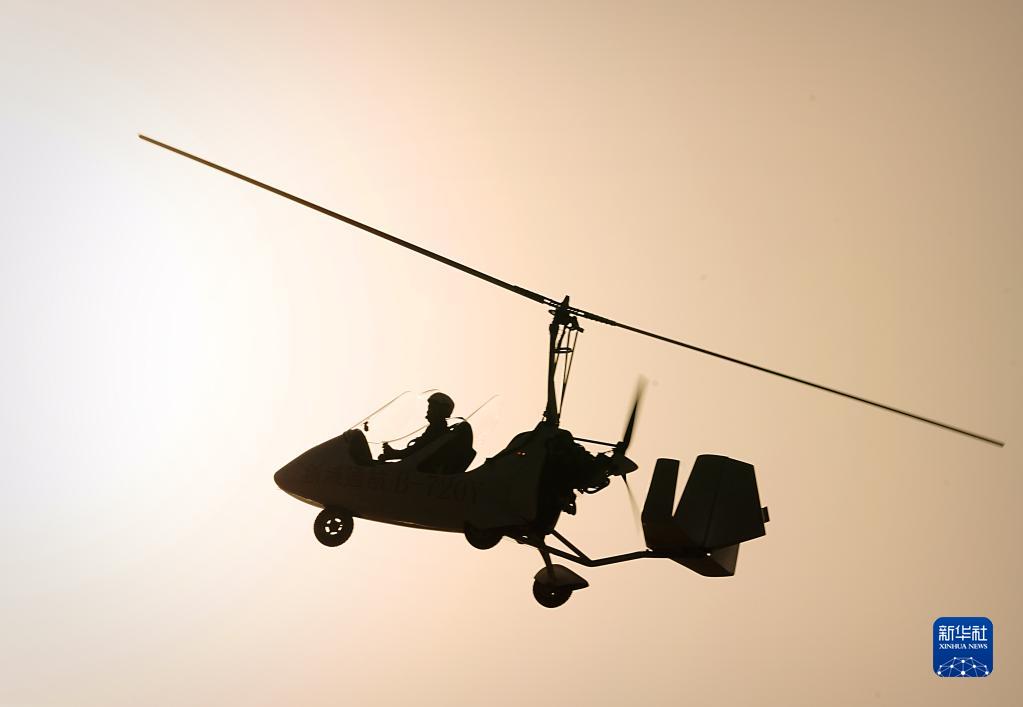 3月14日,楊世誼在洛陽(yáng)市宜陽(yáng)縣的飛行營(yíng)地內駕駛旋翼機進(jìn)行性能測試。