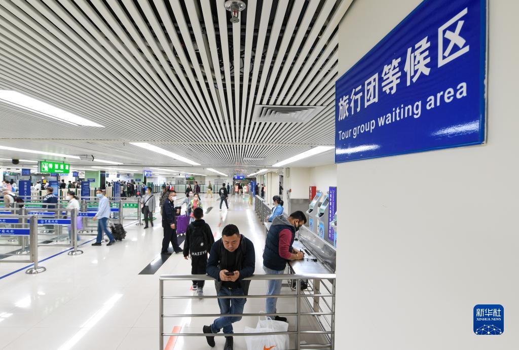 3月15日,旅客在深圳羅湖口岸入境檢查大廳準備入境。