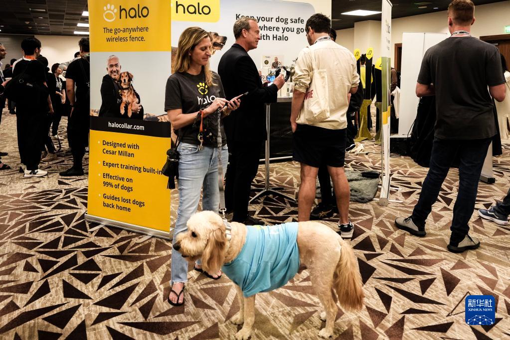 3月11日,在“西南偏南”大會(huì )和藝術(shù)節上,一位參與者正在體驗一個(gè)支持衛星定位的狗項圈。