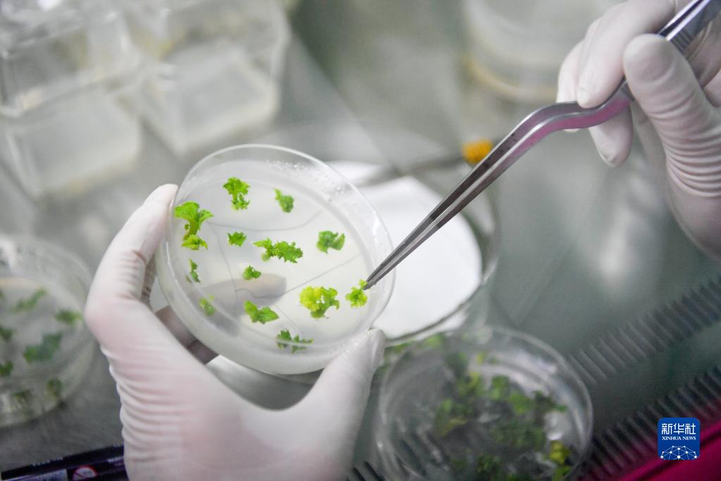 3月14日,在天津市農業(yè)科學(xué)院種質(zhì)資源與生物技術(shù)研究所,科研人員開(kāi)展黃瓜遺傳轉化篩選試驗。