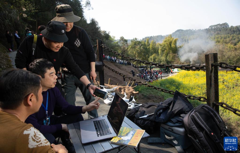 清晨7點(diǎn)30分,“張火癡”準時(shí)從四川犍為縣城開(kāi)車(chē)趕到段家灣,8點(diǎn),架好腳架、起飛無(wú)人機,拍攝當天第一趟蒸汽小火車(chē)穿越油菜花海的畫(huà)面;隨后迅速上車(chē),沿著(zhù)菜子壩、仙人腳等站點(diǎn),8點(diǎn)40分前駕車(chē)到達亮水沱站,拍攝蒸汽小火車(chē)吐蒸汽出彩虹的畫(huà)面……這位沿著(zhù)鐵路追著(zhù)蒸汽小火車(chē)跑的人叫張祥,因為癡迷小火車(chē)二十余年,大家都稱(chēng)呼他“張火癡”。