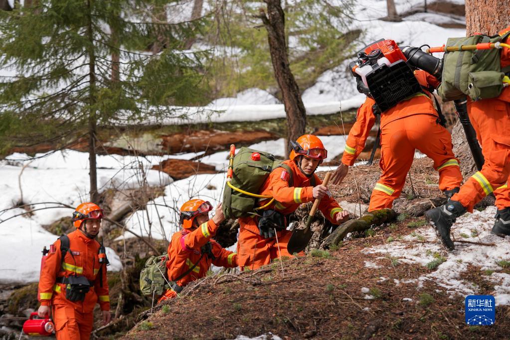 3月15日,鞏留縣森林消防大隊指戰員在庫爾德寧林區內行進(jìn)。