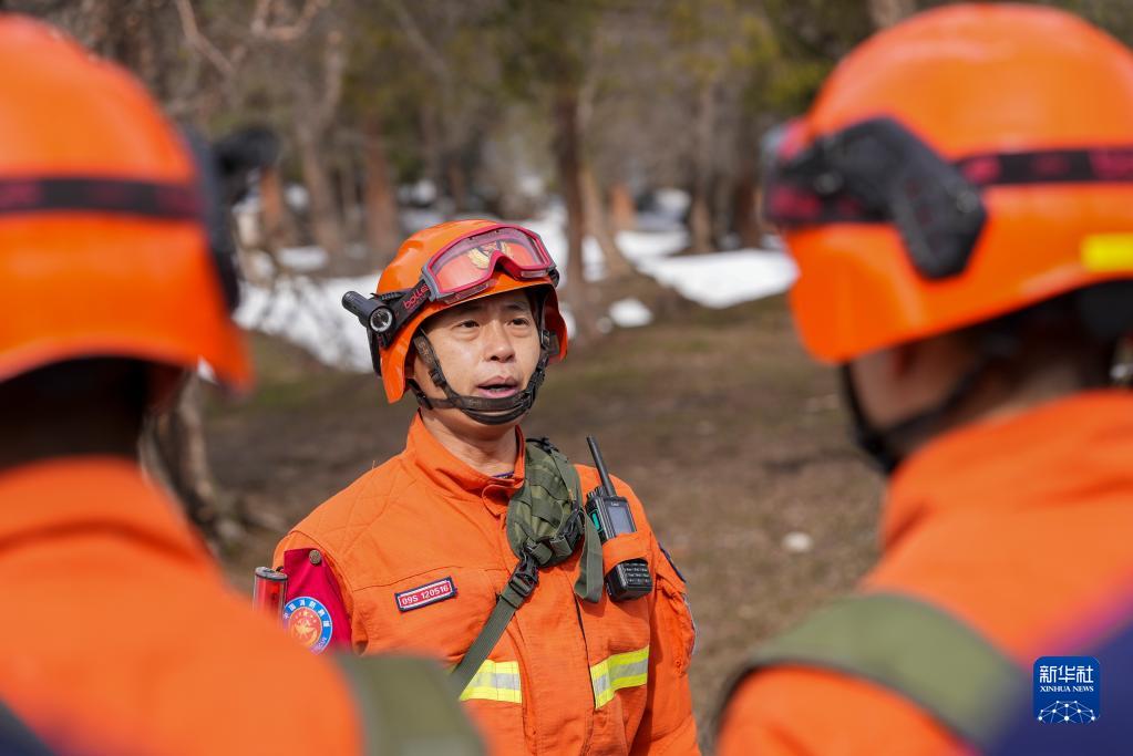3月15日,鞏留縣森林消防大隊指戰員在庫爾德寧林區整理隊伍。