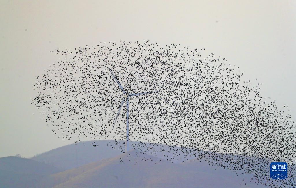 3月15日,在遼寧省法庫獾子洞國家濕地公園拍攝的“鳥(niǎo)浪”。