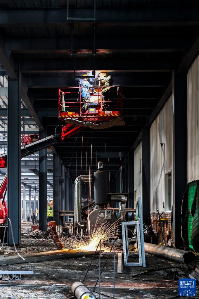 工人在一汽弗迪新能源項目建設現場(chǎng)施工作業(yè)(3月9日攝)。