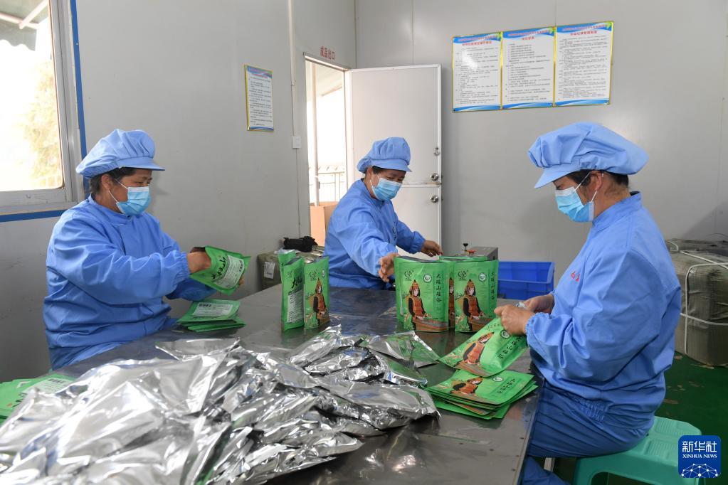 3月16日,在廣西金秀瑤族自治縣長(cháng)垌鄉平道村一家瑤醫藥生產(chǎn)企業(yè),員工在包裝產(chǎn)品。