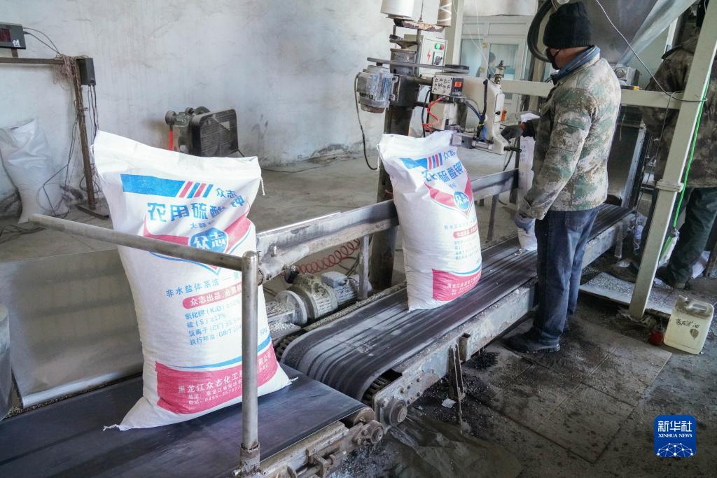 3月16日,在北大荒集團建設農場(chǎng)有限公司拌肥中心,工作人員在進(jìn)行化肥混拌作業(yè)。