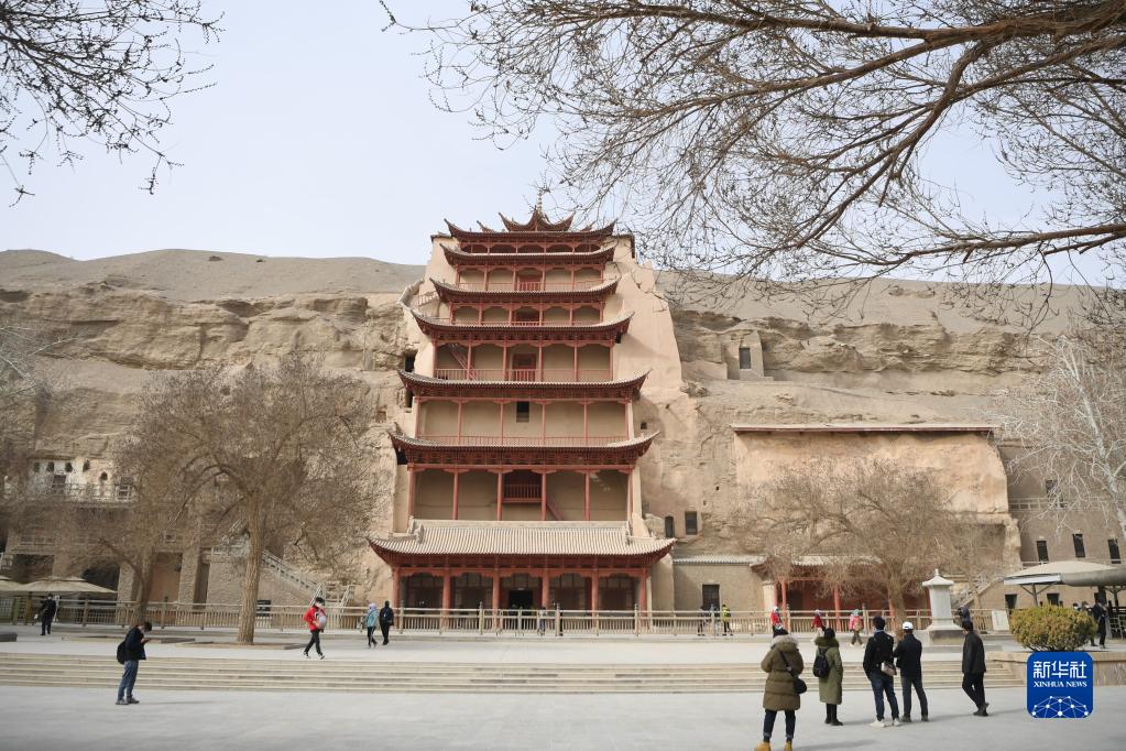 游客在莫高窟參觀(guān)游覽(3月14日攝)。