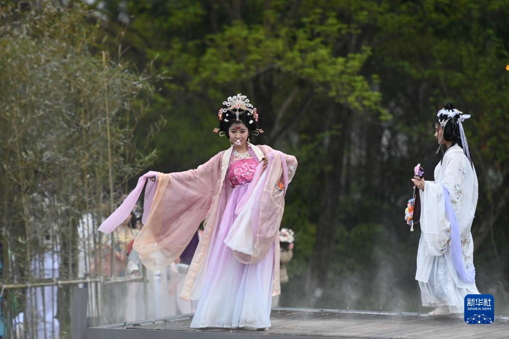 當日,2023西溪花朝節“簪花大會(huì )”在浙江杭州西溪國家濕地公園舉行,市民和游客在充滿(mǎn)宋韻元素的市集里體驗,觀(guān)看演出。