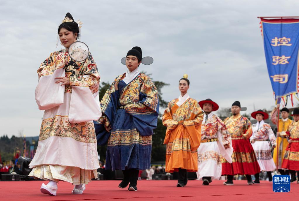 3月18日,在2023年中華民族服飾展演暨閬中漢服紀開(kāi)幕式上,漢服愛(ài)好者展示漢服服飾。