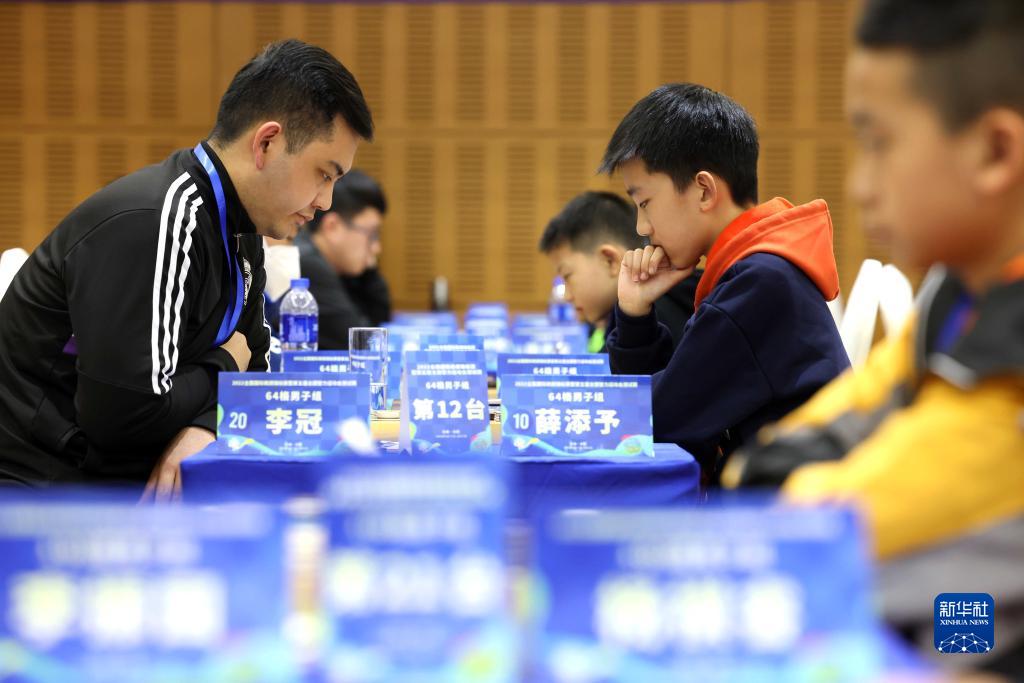 3月18日,在2022全國國際跳棋錦標賽現場(chǎng),選手在進(jìn)行比賽。