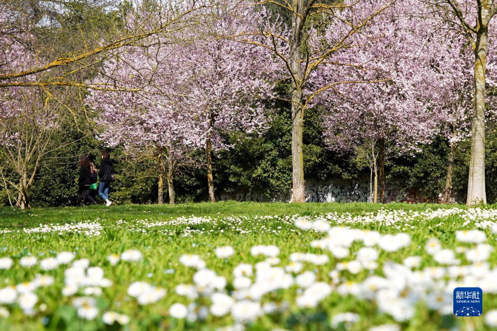 3月18日,人們在意大利羅馬的阿達公園休閑。