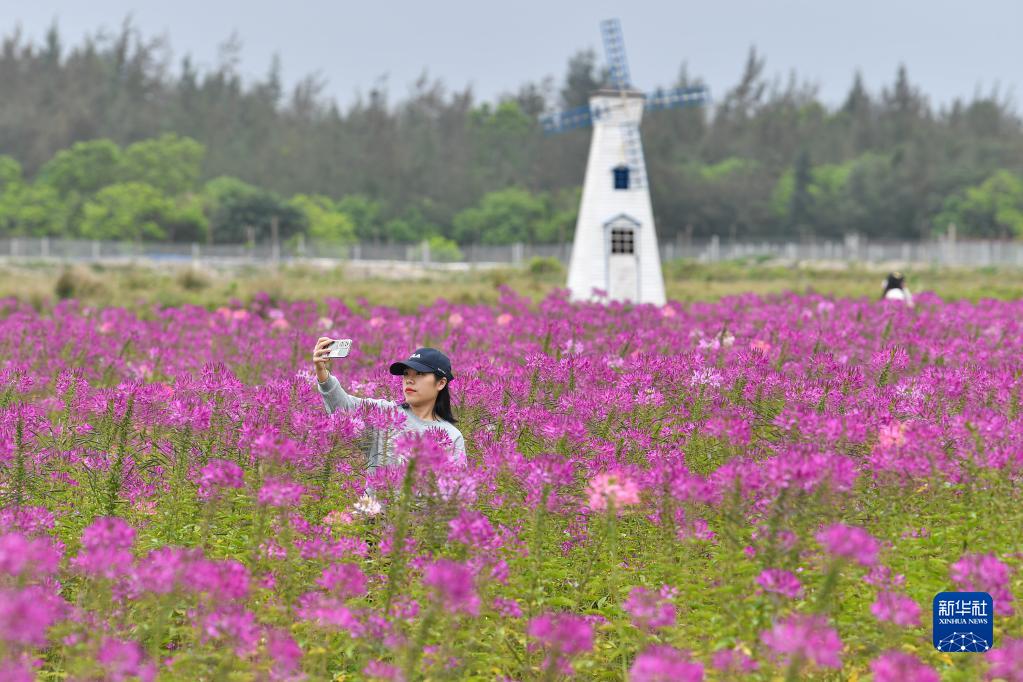近日,海南省文昌市花舞田園鄉村文化旅游區鮮花盛開(kāi),吸引游客前來(lái)踏青游玩,帶動(dòng)春日消費。