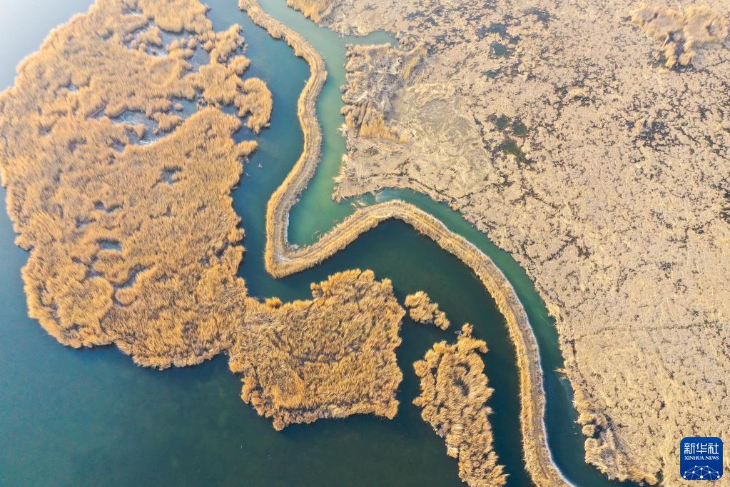 春季的新疆博斯騰湖一景(3月18日攝,無(wú)人機照片)。