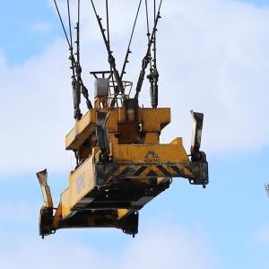 一輛貨車(chē)在滿(mǎn)洲里站貨運車(chē)間集裝箱場(chǎng)裝卸集裝箱(3月15日攝)。