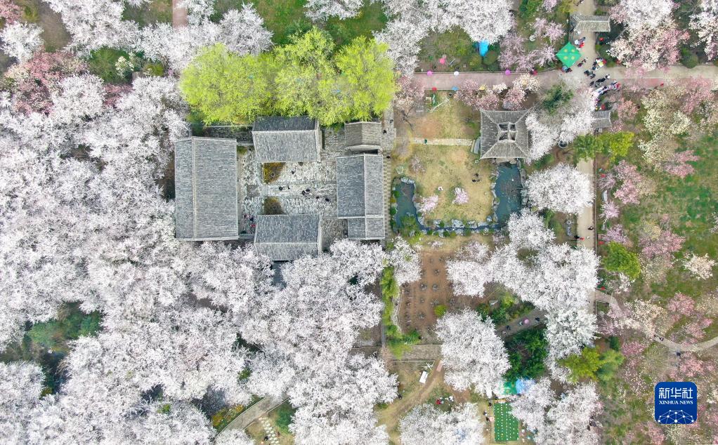 這是3月19日在河南省許昌市鄢陵縣拍攝的唐韻櫻花園(無(wú)人機照片)。