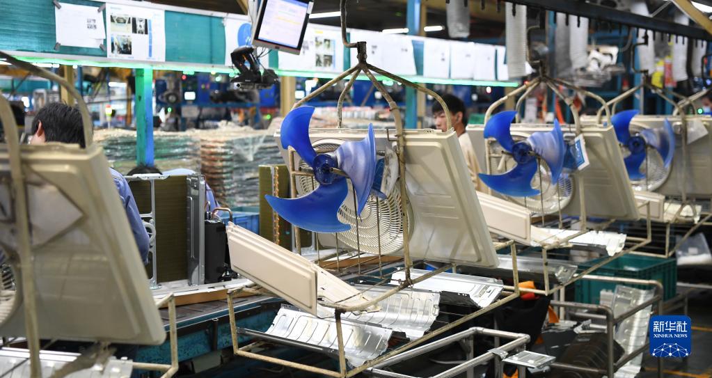 工人在美的家用空調廣州工廠(chǎng)的生產(chǎn)線(xiàn)上工作(3月3日攝)。
