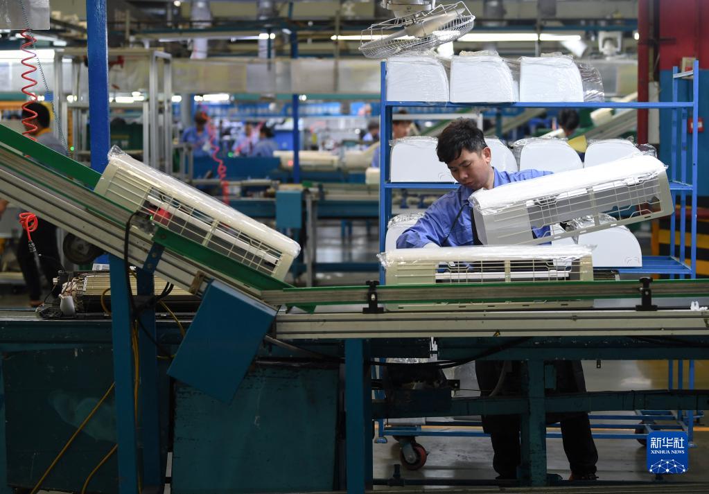 工人在美的家用空調廣州工廠(chǎng)的生產(chǎn)線(xiàn)上工作(3月3日攝)。