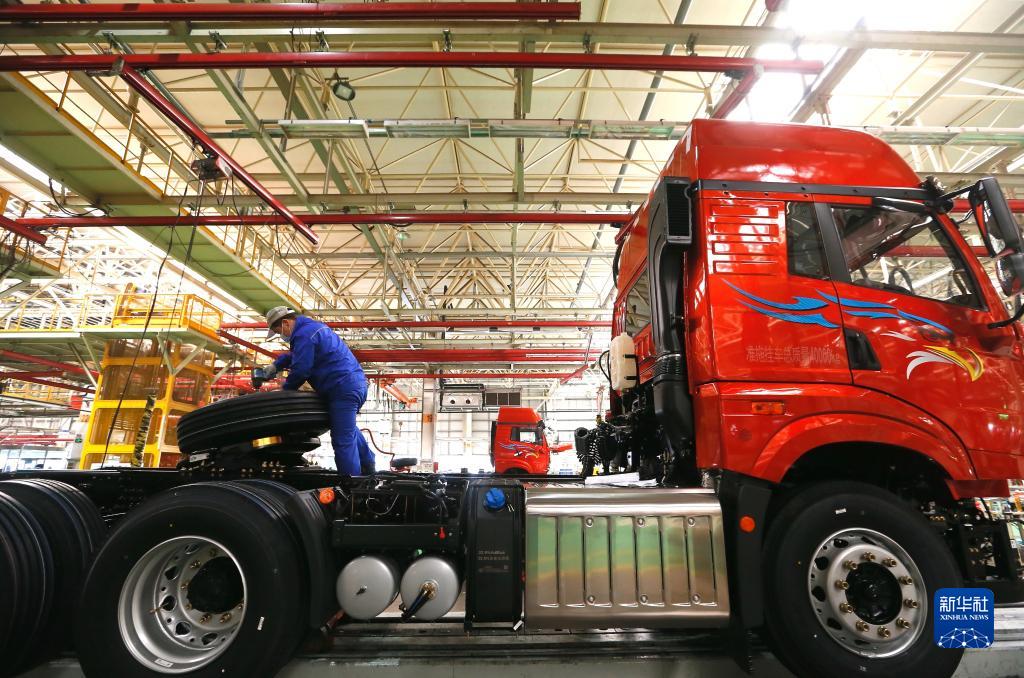 3月20日,在位于山東省青島市即墨區的一汽解放青島汽車(chē)有限公司總裝車(chē)間,工人在組裝汽車(chē)。