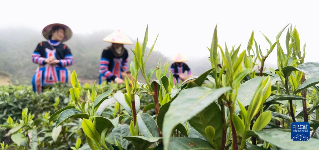 3月20日,在湖南衡陽(yáng)常寧市塔山瑤族鄉,茶農在茶園采茶(手機照片)。