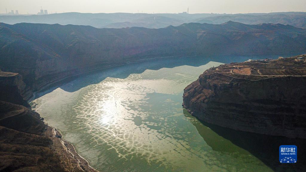 黃河老牛灣位于山西省和內蒙古交界處,我國黃土高原滄桑的地貌特征在這里彰顯。初春時(shí)節,黃河老牛灣段部分水面依然冰封,從空中俯瞰呈現出蒼茫雄渾的景象。
