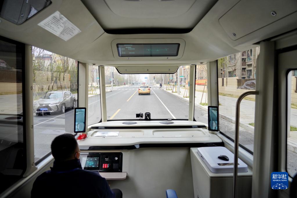 3月20日,智能網(wǎng)聯(lián)巴士901線(xiàn)測試車(chē)在河北雄安新區容東片區道路上行駛。