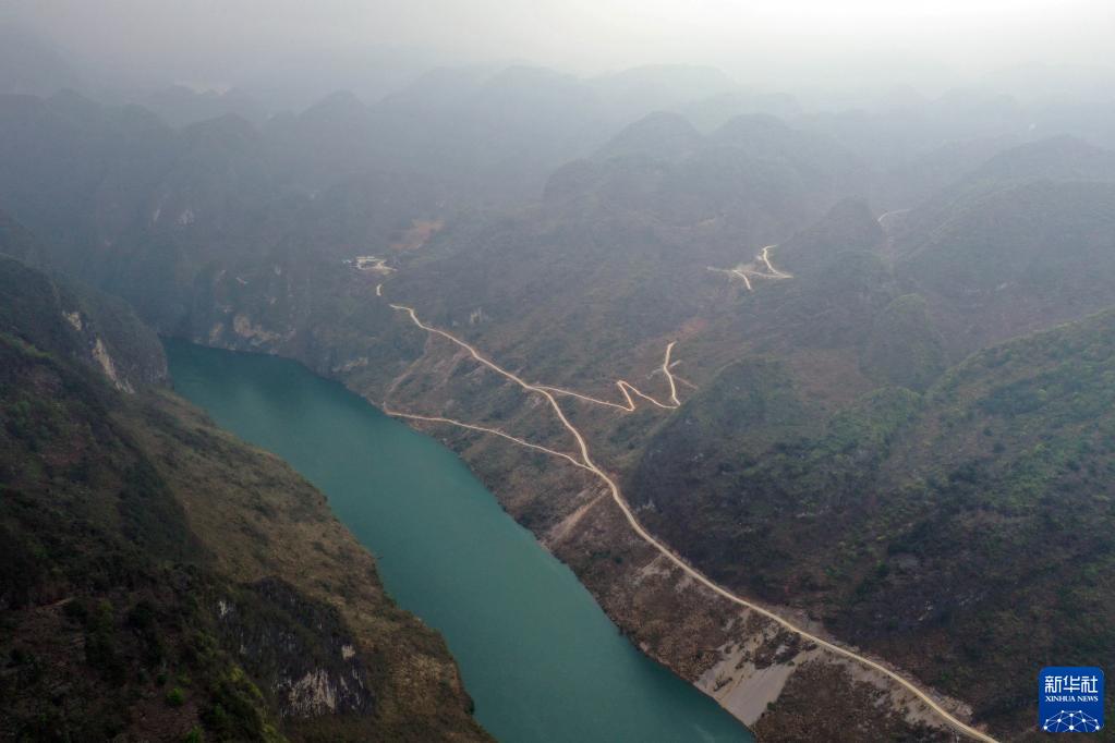 廣西大化瑤族自治縣板升鄉八好村抗旱應急供水工程水源取自紅水河(2023年3月20日攝,無(wú)人機照片)。