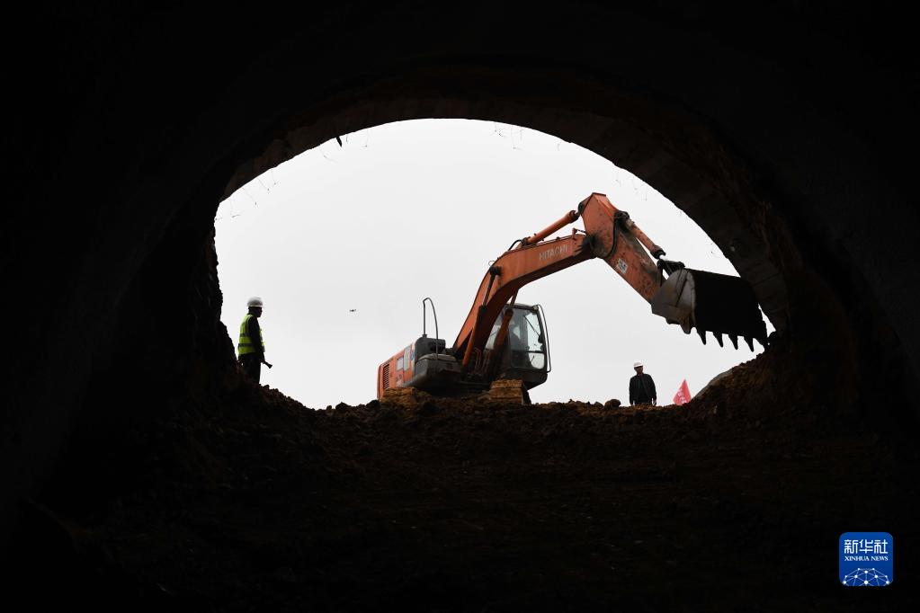 3月21日,中鐵四局施工人員在巢馬城際鐵路新大金山隧道進(jìn)行貫通施工。