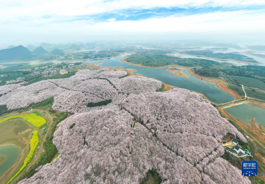 近日,貴州省貴安新區櫻花園內的2.4萬(wàn)畝櫻花競相綻放,如雪似霞,吸引游客前來(lái)賞花觀(guān)光。