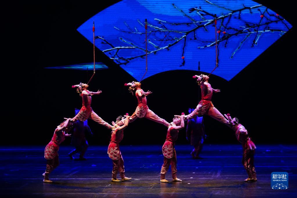 3月21日,在位于山東省濟南市的山東省會(huì )大劇院,演員表演雜技節目《韻·花樣頂技》。