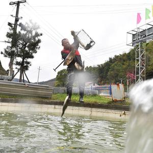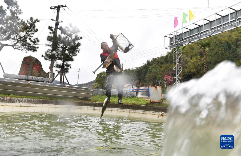 3月22日,衡山縣嶺坡鄉燈山村泉水魚(yú)養殖基地工作人員在捕魚(yú)。