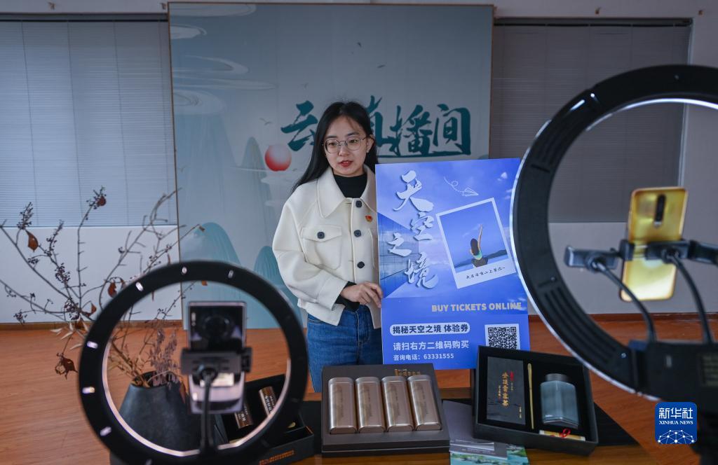3月23日,博士研究生畢業(yè)的里山鎮安頂村村書(shū)記助理楊?lèi)傉邳h員直播間內進(jìn)行安頂村“天空之境”旅游業(yè)態(tài)的直播推廣。