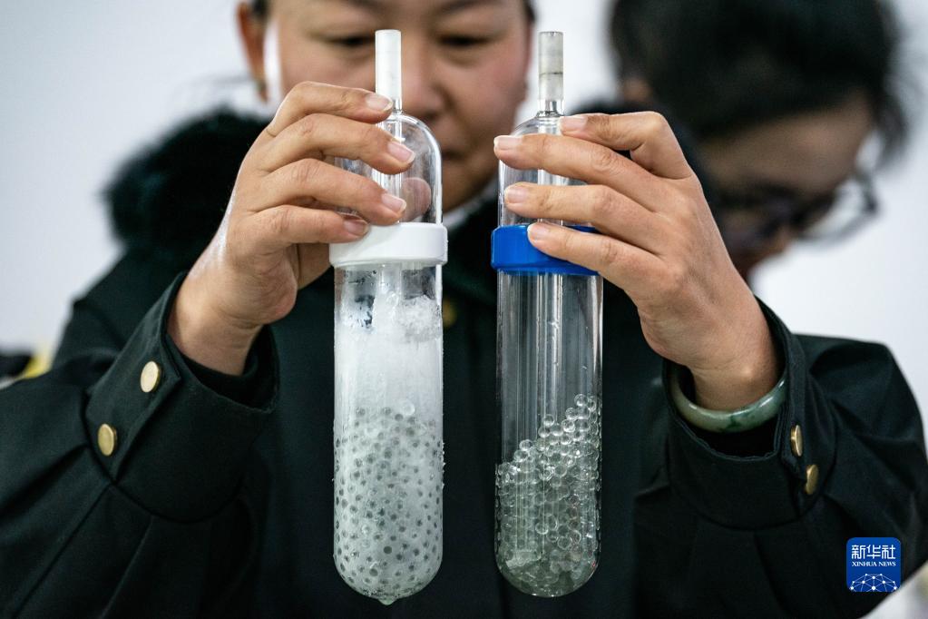工作人員彭小清在香格里拉國家大氣本底站大氣成分業(yè)務(wù)用房進(jìn)行溫室氣體冷阱更換(3月9日攝)。