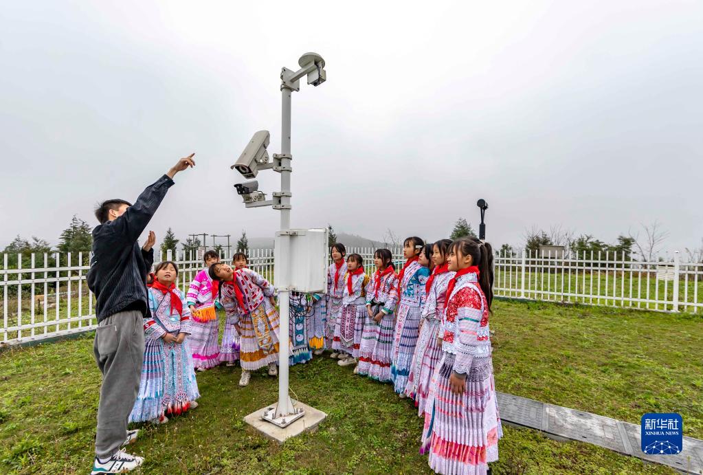 3月23日,學(xué)生在貴州省黔西市氣象局綜合氣象觀(guān)測站聽(tīng)工作人員講解智能觀(guān)測儀工作原理。