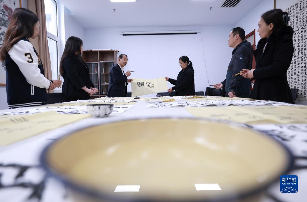 3月23日,群眾在內丘縣文化館學(xué)習書(shū)法。