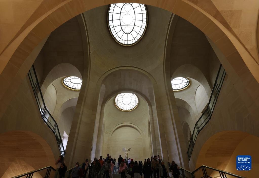 3月22日,人們在法國巴黎盧浮宮參觀(guān)《薩莫色雷斯勝利女神》。