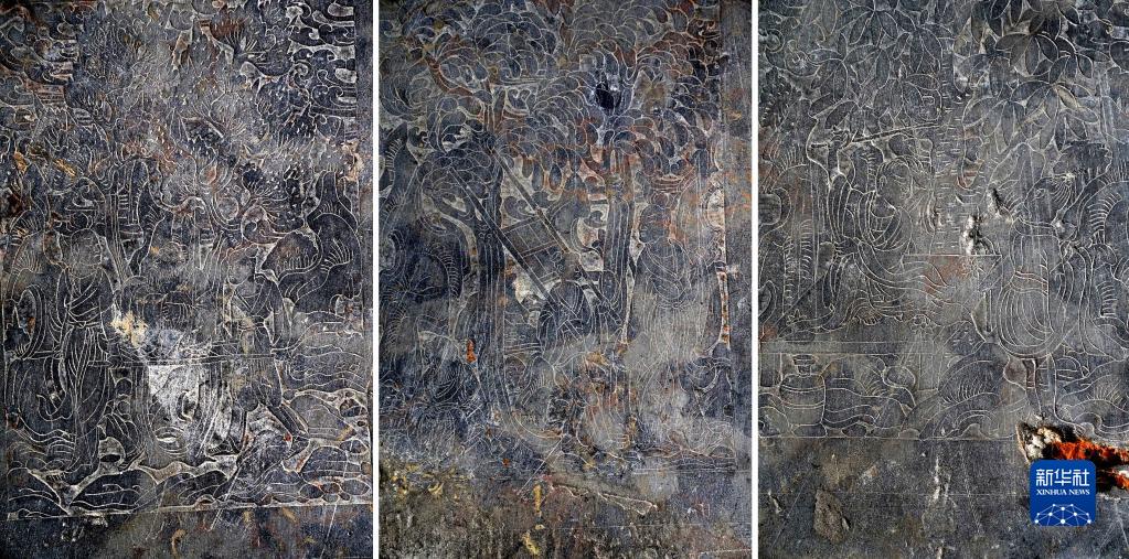 日前入選2022年度河南省五大考古新發(fā)現的洛陽(yáng)孟津朱倉北朝墓由3座墓葬組成,初步推測墓葬年代或為北魏末年至東魏時(shí)期,其中2座墓葬內各發(fā)現1套規模較大、布局嚴謹的圍屏石棺床,這是洛陽(yáng)首次考古出土北朝圍屏石棺床。據介紹,每個(gè)圍屏石棺床有4塊石屏風(fēng),每塊石屏風(fēng)各有3幅線(xiàn)刻圖像,內容多是中原傳統的孝子、高士故事,以及墓主人出行故事,為研究北魏時(shí)期繪畫(huà)藝術(shù)提供了新的實(shí)物資料。