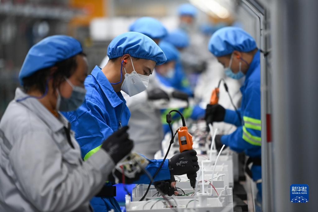 工人在浙江沁園水處理科技有限公司的生產(chǎn)車(chē)間組裝家用凈水產(chǎn)品(3月22日攝)。