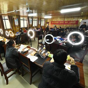 3月24日,在廣西融水苗族自治縣桿洞鄉黨鳩村,村民在學(xué)習電商直播技能。