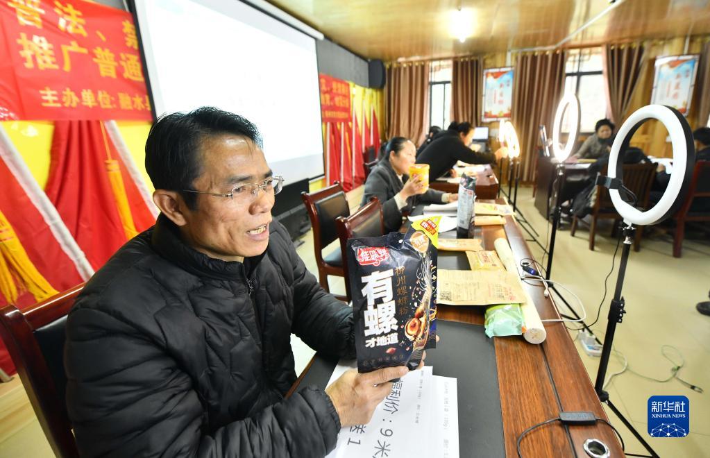 3月24日,在廣西融水苗族自治縣桿洞鄉黨鳩村,村民在學(xué)習電商直播技能。