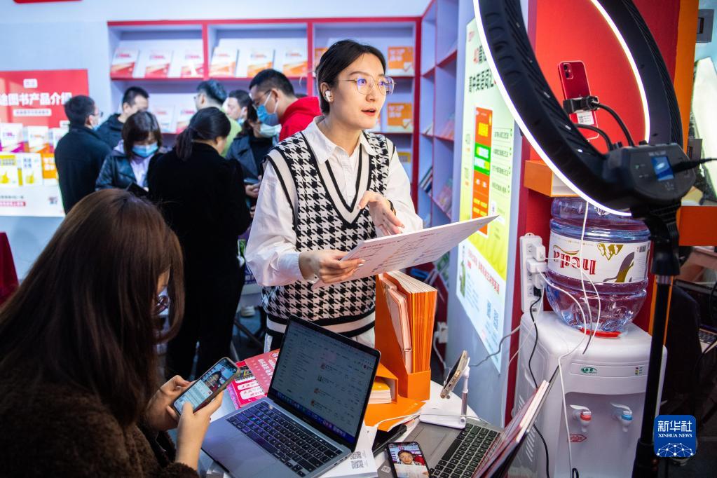 3月24日,在湖南國際會(huì )展中心,主播在直播推銷(xiāo)圖書(shū)。